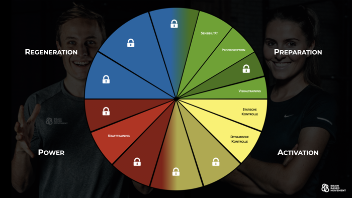 Herzlichen Glückwunsch! Du hast bereits über 20 Übungen gemeistert. Nachdem wir in dem ⭐️ Special 1.0 die ersten 15 Übungen Revue passieren lassen haben, werden wir uns heute um das Session Design im Personal-, Kleingruppen- und Mannschaftstraining kümmern. Was ist mit dem "Session Design" gemeint? Unter dem Session Design kannst Du Dir den inhaltlichen Ablauf einer Trainingseinheit vorstellen. In jeder Trainingseinheit gibt es immer wiederkehrende Inhaltsblöcke wie beispielsweise den Sensibilitäts-, Propriozeptions- und Kraftblock. Im nächsten Schritt werden wir Dir unser Session Design zeigen, sodass Du die bereits kennengelernten Übungen den einzelnen Inhaltsblöcken zuordnen kannst: